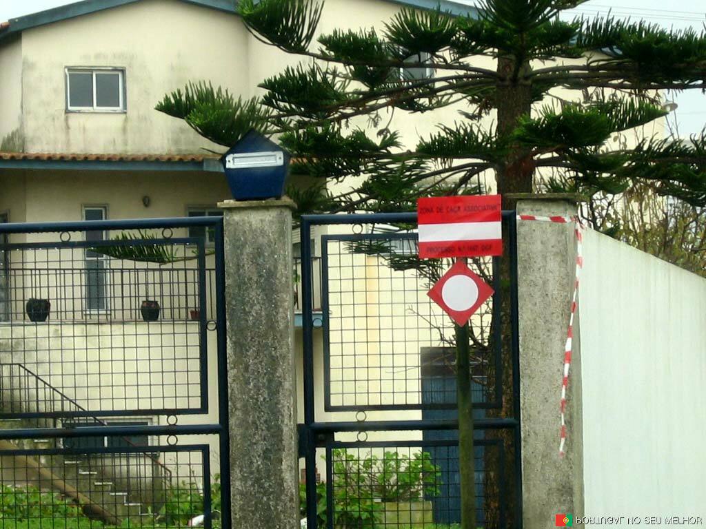 Esta placa foi colocada pelo vizinho da frente, que por acaso é caçador... e que vai ficar à espera que a caça saia á rua! Será o dono ou a dona da casa??