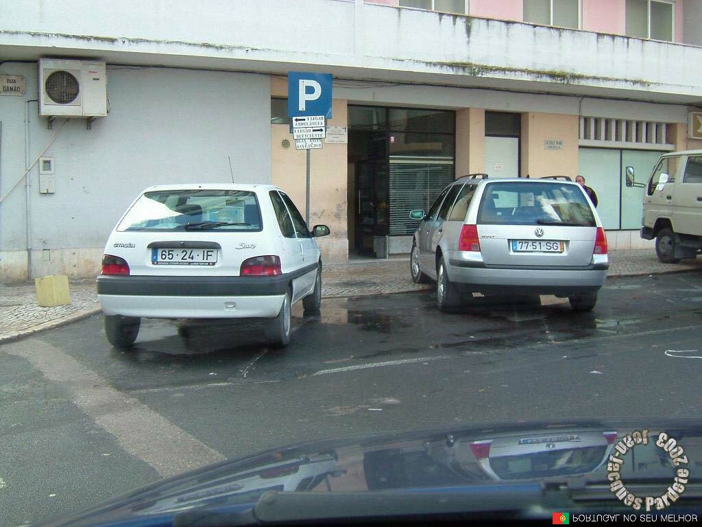 O lugar à direita é reservado a deficientes e o da esquerda a ambulâncias; o saxo é do securitas e o vw deve ser um novo tipo de ambulância discreta e que precisa de dois lugares…
