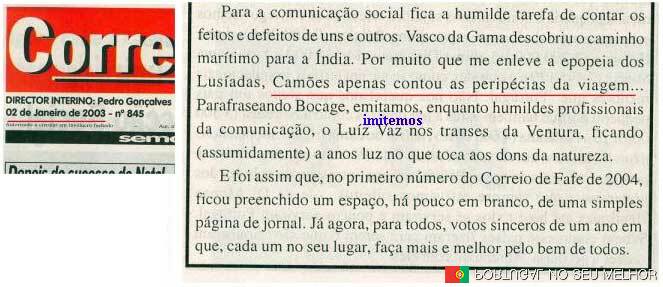 Jornal Correio de Fafe, editorial da edição de 02 de Janeiro de 2003, perdão, 2004 (acertem o relógio!!) por um jornalista que se compara a (e “emita”) Camões.