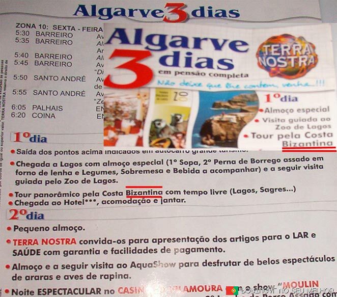 A ultima vez que estudei história, Bizâncio era onde actualmente se situa uma terra de mouros que escrevem com o alfabeto latino lá para os lados de Istambul. O algarve também preenche estas condições mas não creio ser o caso…