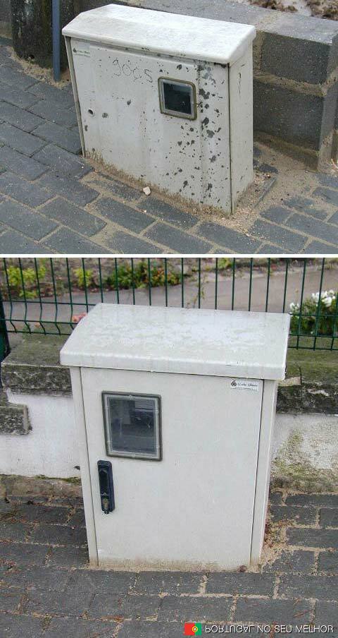 Quem me diz como abrir estas portas? A de baixo é o armario de um semáforo de controle de velocidade e de passadeira em frente a uma escola primária bem pertinho de Leiria. Se o disjuntor alguma vez for abaixo quero ver quanto tempo aquelas crianças vão correr perigo para atravessar a estrada.