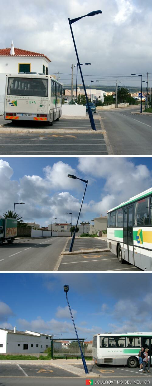 Há bem mais de um MÊS que este candeeiro se encontra assim, é na bonita Vila de Sagres. Esperemos que ninguém saia magoado.