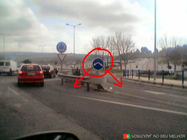 este sinal não informa, obriga o condutor a contornar o obstáculo pela direita ou pela esquerda, apesar de oficialmente não existir!