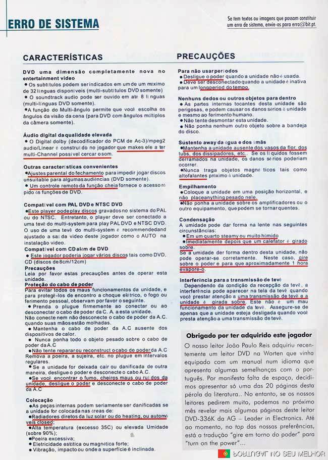 Há um parte que diz "não conecte nem não desconecte..." Soberbo! Já para não falar de "plugue"! :P