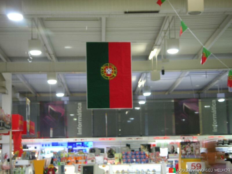 Foto tirada a 19/06/04 no jumbo de Alfragide. De reparar no pormenor que as bandeiras pequenas em plástico estão correctas, mas mesmo assim ninguém notou a diferença.