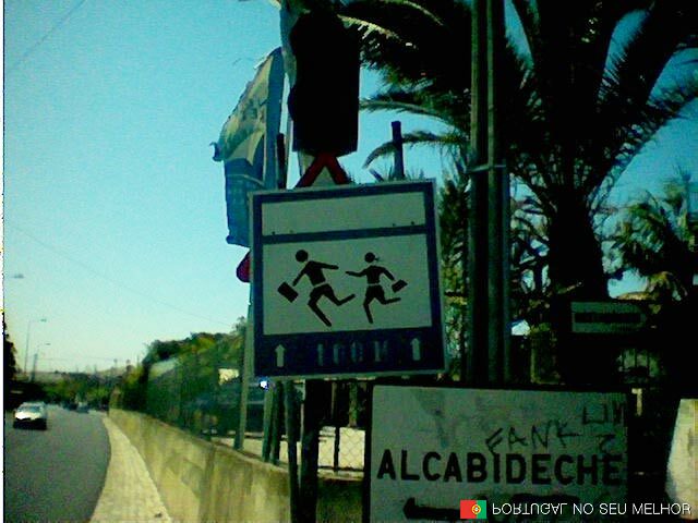 Juro que gostava de saber que sinal de PERIGO é aquele… é que um sinal triangular é de perigo, mas este está escondido por algum motivo. Em Alcabideche