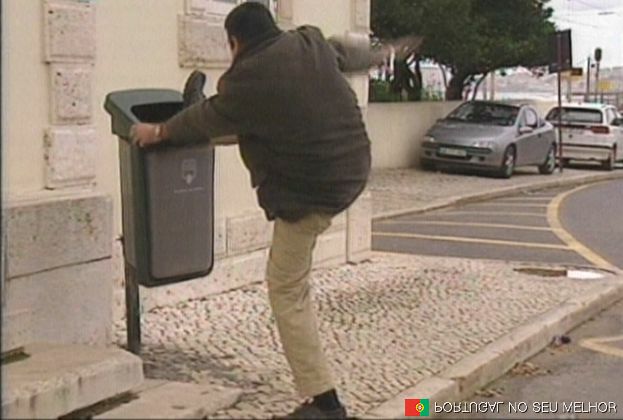 Passava numa rua de Lisboa quando este senhor me surpreende a limpar o seu sapato com porcaria de cão num caixote do lixo Público…