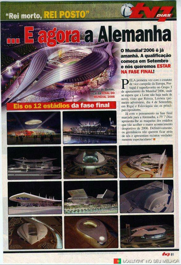 A TV7 dias publicou esta pérola numa das suas últimas edições. Maquetas de estádios chineses para as Olimpíadas de 2008, transformaram-se em sedes dos jogos do campeonato mundial de futebol da Alemanha em 2006. Aqui fica o site que prova a origem das maquetas.