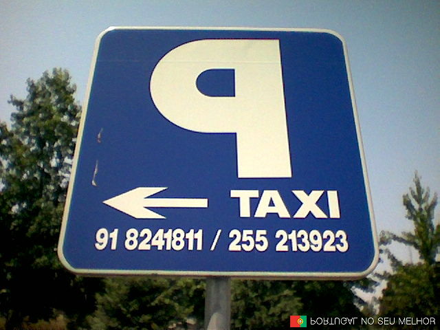 Isto é para quem vem de carro, a conduzir. Olha pelo retrovisor, e já fica a saber onde é o parque para táxis. (Dá jeito para quem vai a conduzir!!)