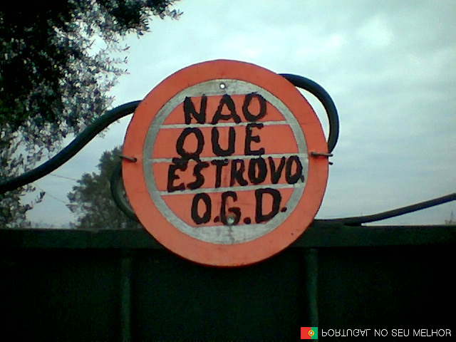 O.G.D. ??? Deve ser: Organização das Garagens Desobstruídas. A foto foi tirada em Palme - Barcelos num portão junto ao café e mercearia da Aida.