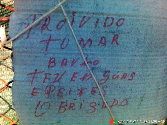 Esta foto foi tirada há uns meses, enquanto decorria o meu estágio no GAT de Braga. Demorou algum tempo para perceber o que estava lá escrito. Para quem não percebe, aqui fica: “Proibido tomar banho,tem enguias e peixes. Obrigado”