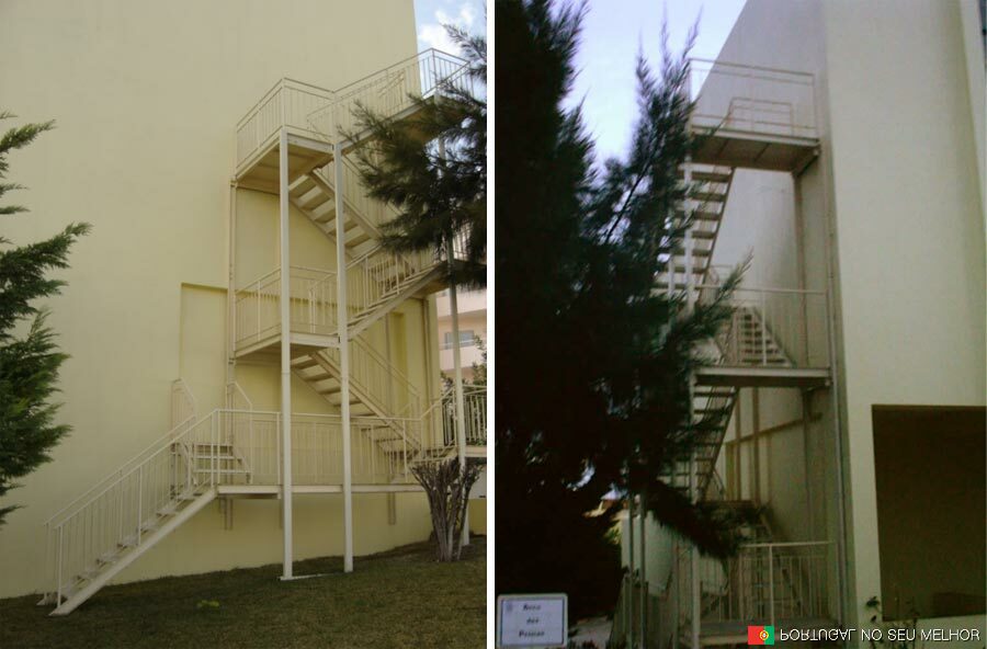 ora aqui estão as escadas de emergência do Pavilhão Municipal da Arrifana...