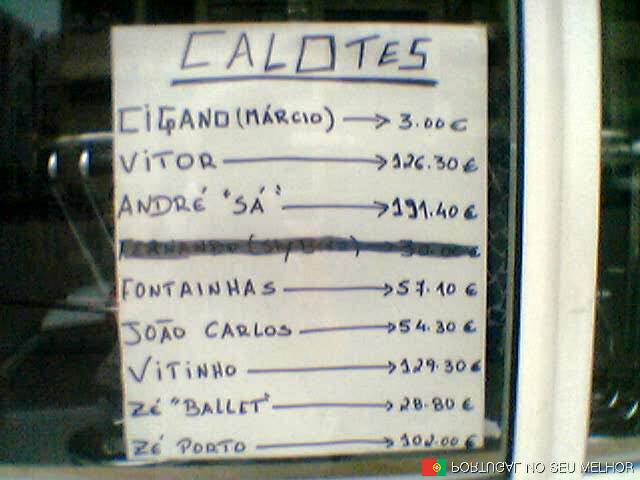 Mais uma foto tirada na cidade de Valença. Desta vez num café em que a lista de caloreiros é afixada à entrada do mesmo. Agora façam as contas e vejam a quantidade que estes javardos já beberam para deverem tanto…