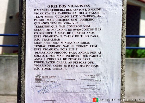 Este anúncio foi colocado por diversos postes de electricidade nos arredores de Aveiro. Pelos vistos alguém foi vigarizado e decidiu desmascarar publicamente esse senhor…