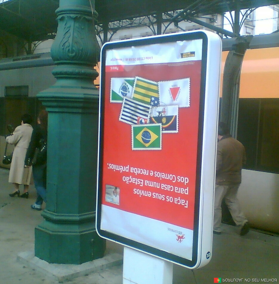 Este anúncio foi colocado num placar de uma das linhas da estação de S. Bento no Porto. Deu tanto trabalho a pôr que nem se deram ao trabalho de o virar.